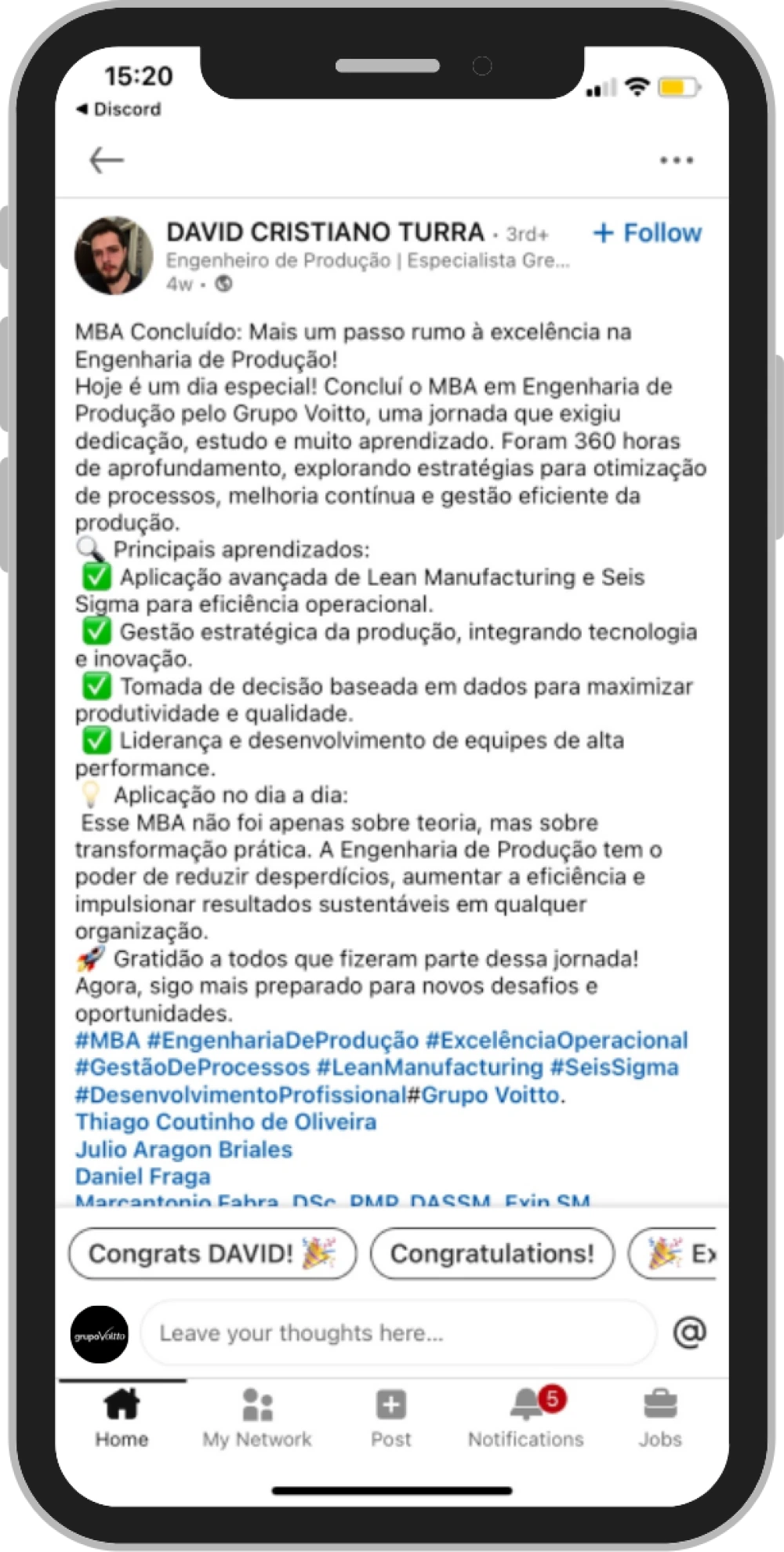 Ao final do MBA